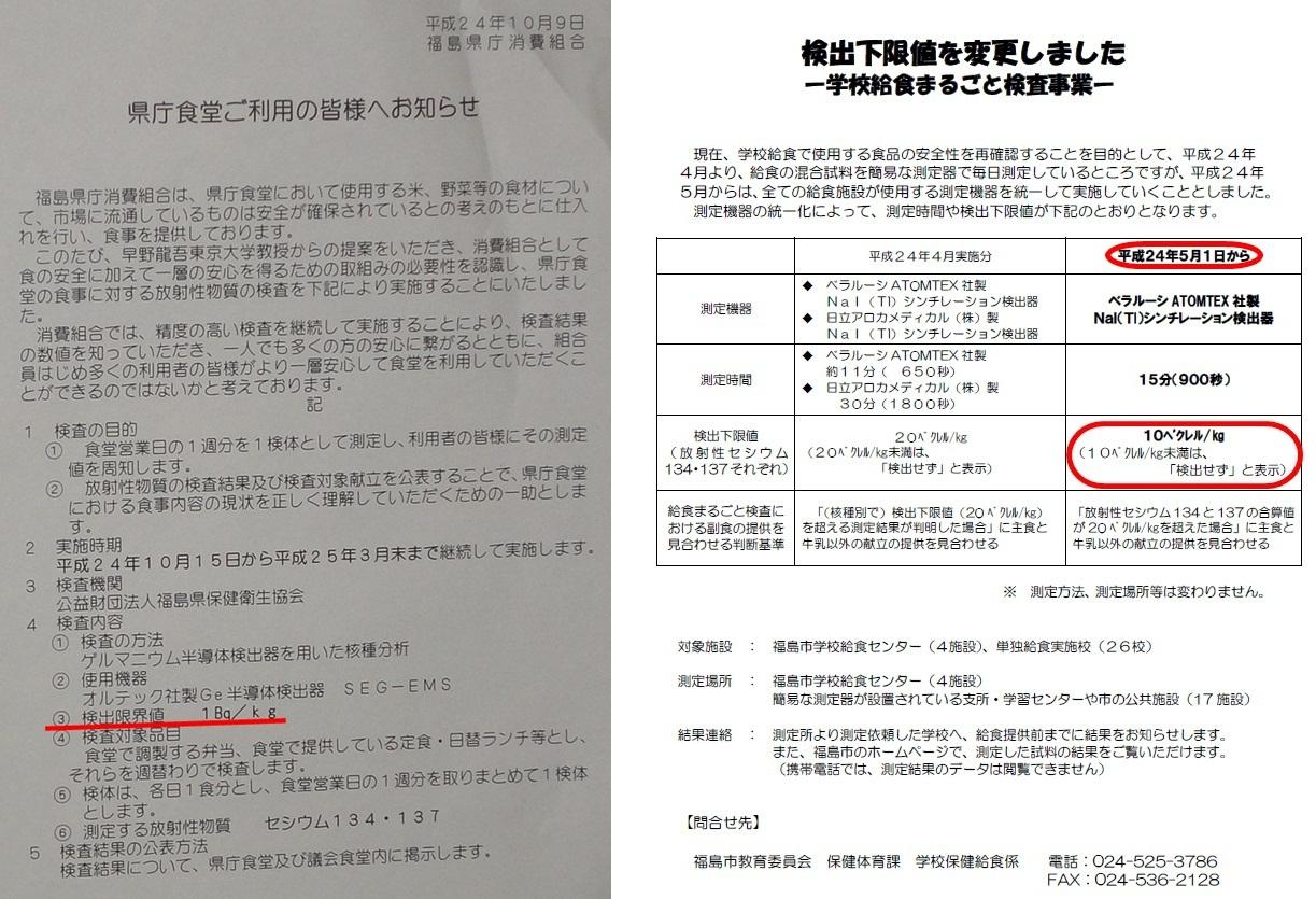 福島県庁の食堂の放射性物質の検査の検出限界値は『1ベクレル』ですが、子どもの学校給食(福島市)の検出限界値は『10ベクレル』だそうです。あべこべです。あまりにもふざけた話で頭に血が昇って言葉になりませんので、コメントは差し控えて(激怒 pic.twitter.com/GJ0kJPv1